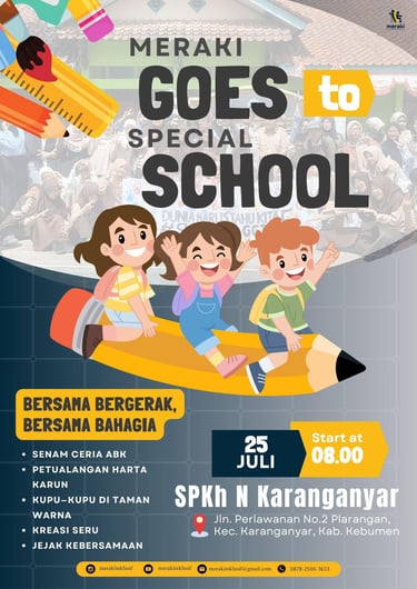 Meraki inklusif telah melaksanakan kegiatan Meraki Goes to Special School (mgtss) ke-6 pada tanggal 25 Juli 2025 di SPKh Negeri Karanganyar.